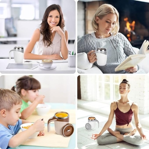 Self Stirring Mug is great for coffee, hot chocolate, milk, protein shakes and many other lightly blended beverages that can be whipped. It's also the perfect gift for office, travel, Father's Day, Mother's Day, Christmas, Thanksgiving, and more