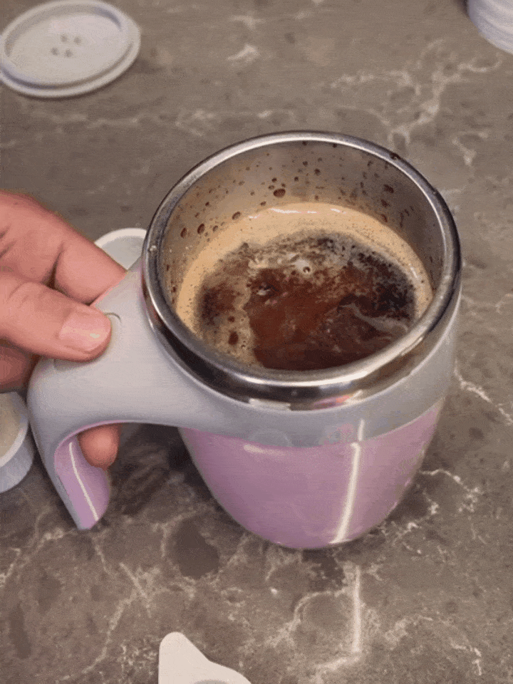Remove the magnetic beads from the lid and place them on the bottom of the cup, press a button to start automatic stirring, press again to stop stirring. The self electric mixing cup has a solid lid to prevent spills.