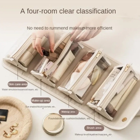 DETACHABLE 4-IN-1 DESIGN: This cosmetic bag features a versatile 4-in-1 design, allowing you to detach and use each compartment independently. Perfect for customizing your storage needs whether you're at home or on the go!